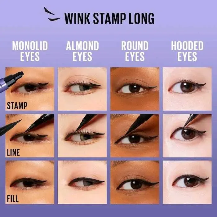 Contiene un sello de ala de doble punta y un delineador líquido en bolígrafo que es resistente a las manchas, duradero y resistente al agua, lo que te da un look de delineador de ojos dramático con alas súper fácil en todo momento.