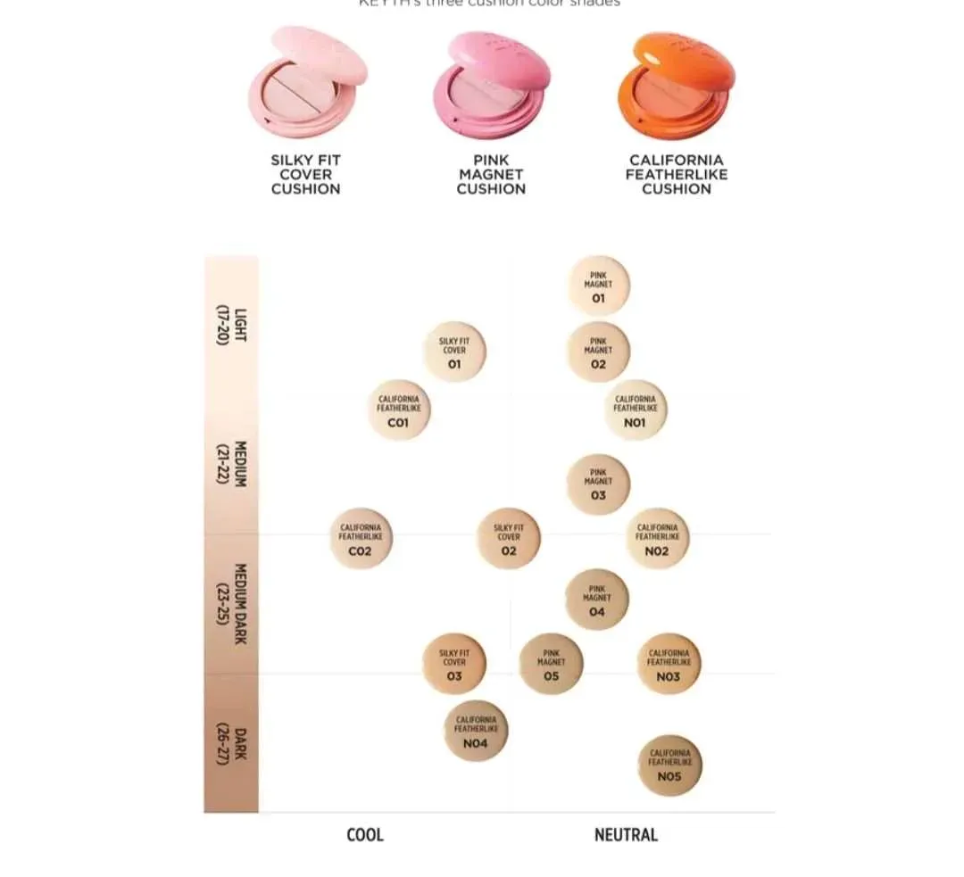 Base de maquillaje en formato cushion, presenta una textura semibrillante, brindando un acabado húmedo y de larga duración.