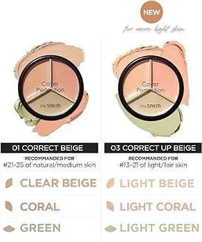 Contiene tres tonos (beige, salmón y verde) ideales para corregir problemas específicos de la piel.